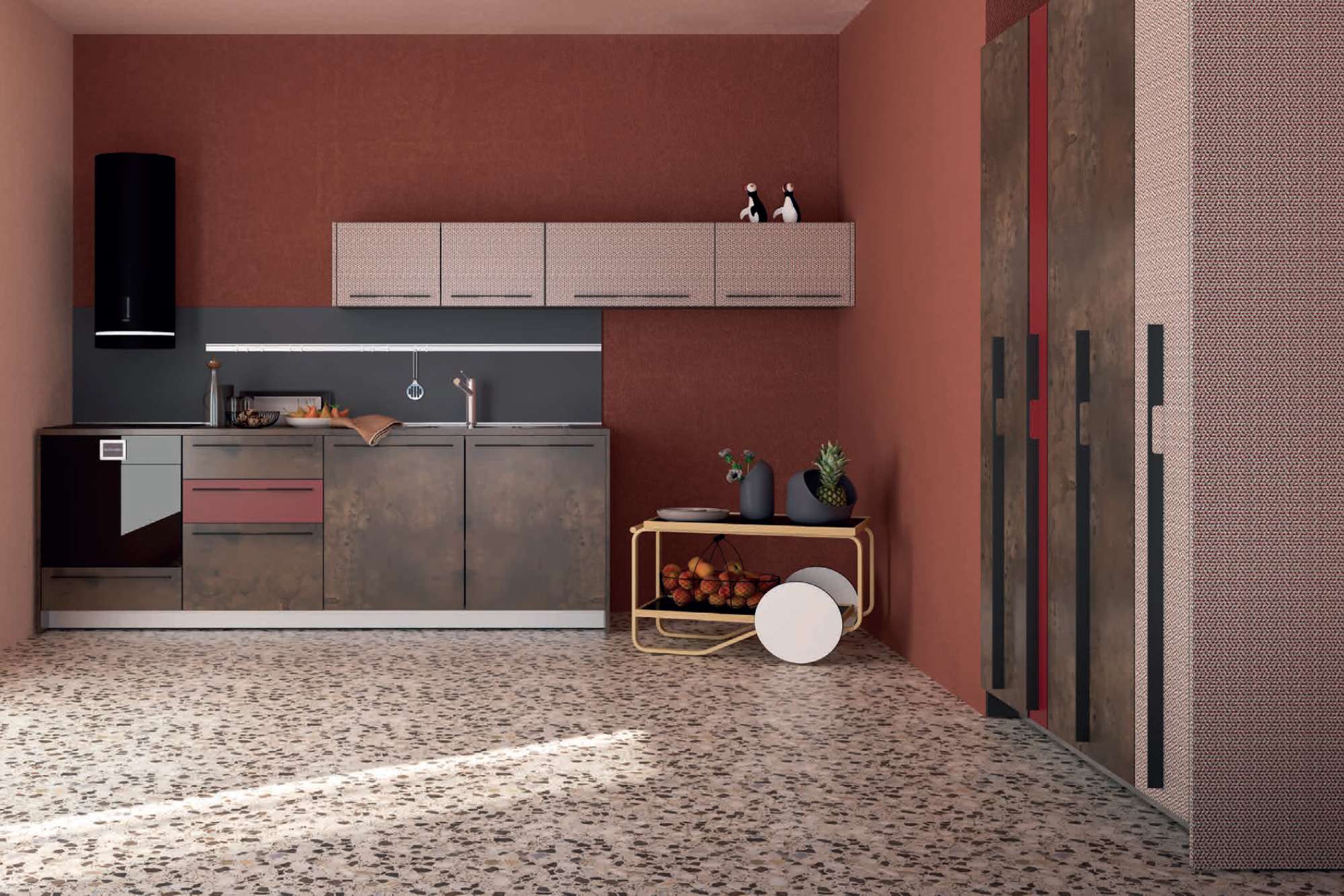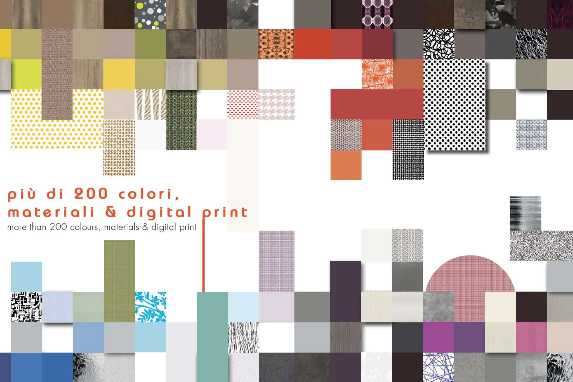 Il cuore dei progetti DeRosso è il laminato, che diventa superficie grafica e decorativa. Pattern e colori firmati da designer come Karim Rashid, prodotti da Abet Laminati, rendono ogni pezzo unico e immediatamente riconoscibile. Nessun dettaglio è banale.